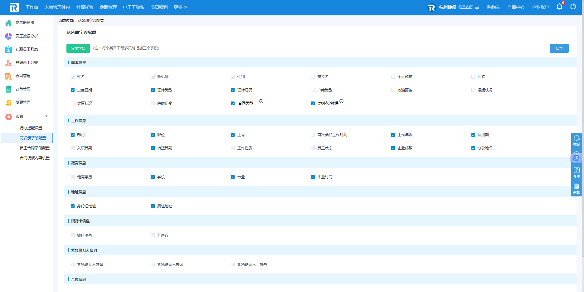 (2)花名册字段配置
