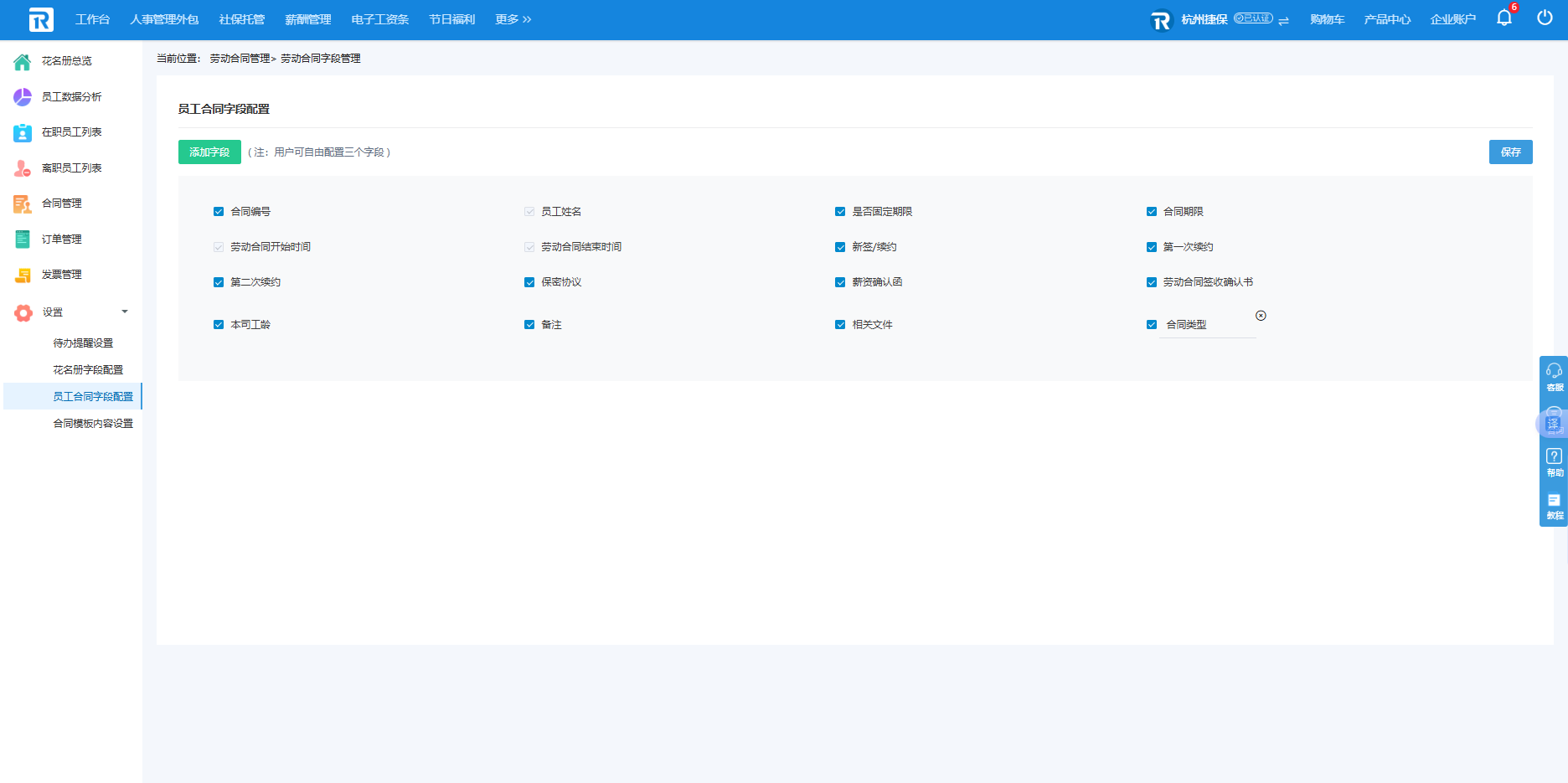 (3)员工合同字段配置