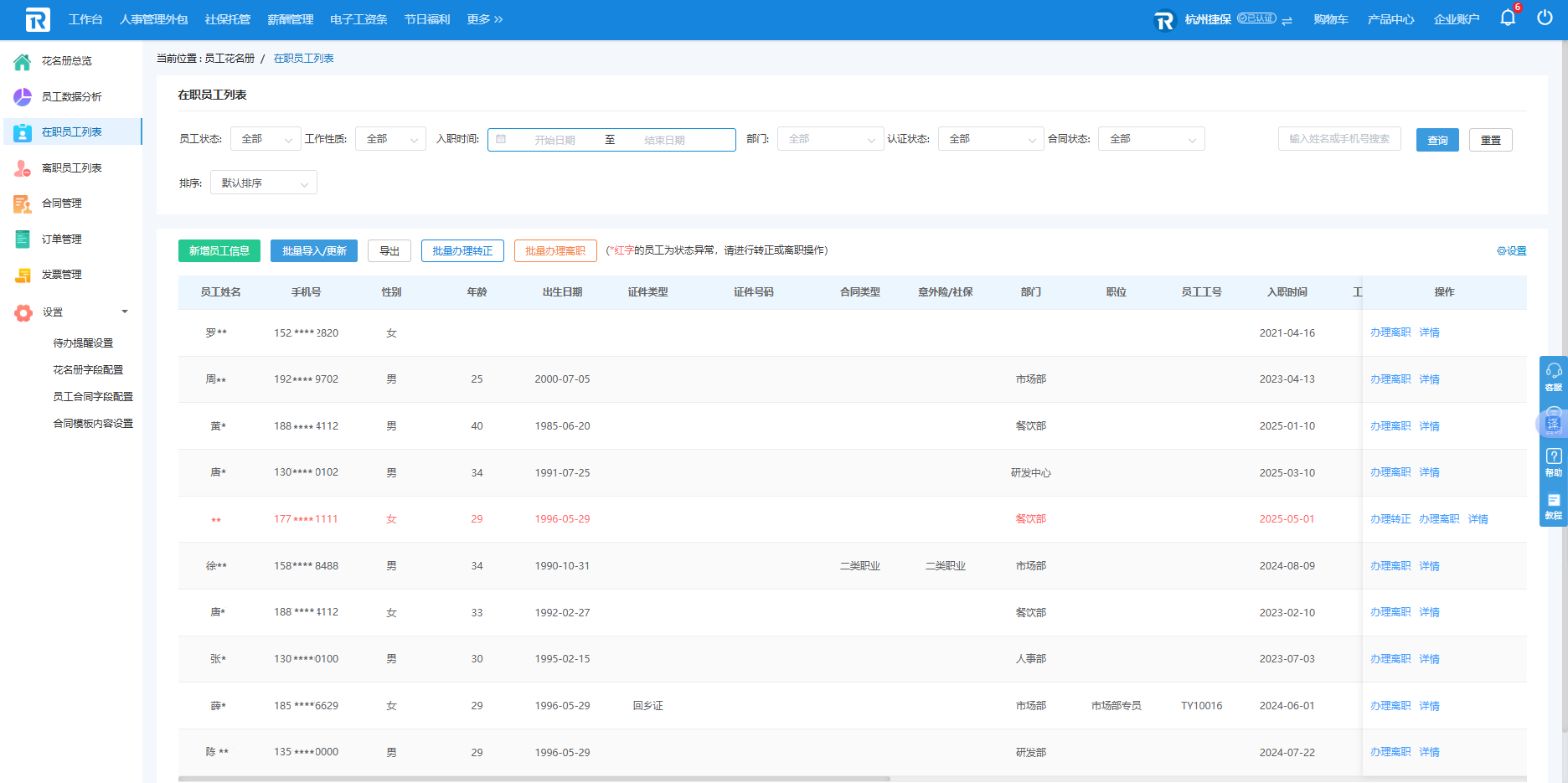 壹人事员工花名册主要功能介绍