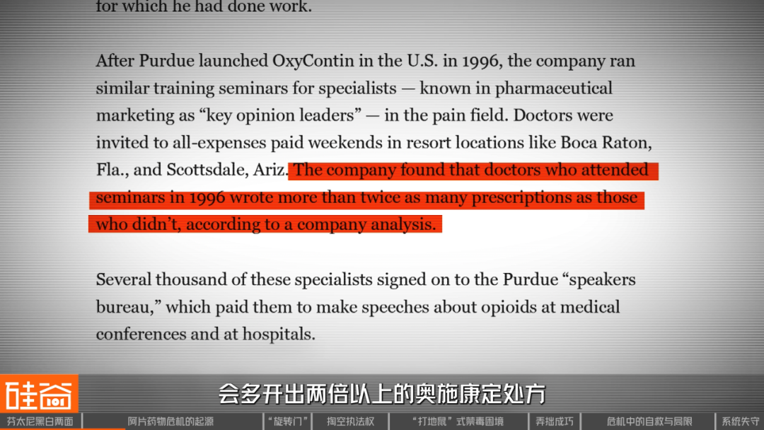有分析显示,参加1996年研讨会的这些医生和没参加讲座的医生相比,会多开出两倍以上的奥施康定处方。