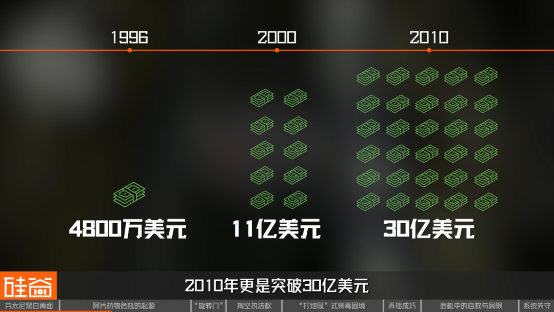 在普渡制药的大肆营销之下,这样一款看似完美的“划时代”止痛药年销售额从上市时(1996年)的4800万美元猛增到2000年的11亿美元,2010年更是突破30亿美元,成为普渡制药最赚钱的产品之一。