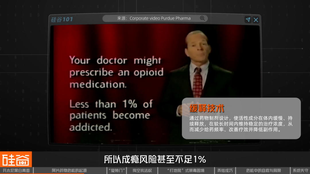 可是普渡在奥施康定上市时宣称因为采用了缓释技术,所以成瘾风险甚至不足1%。现在听来匪夷所思的数据,当年却真的让不少医生和患者信以为真。