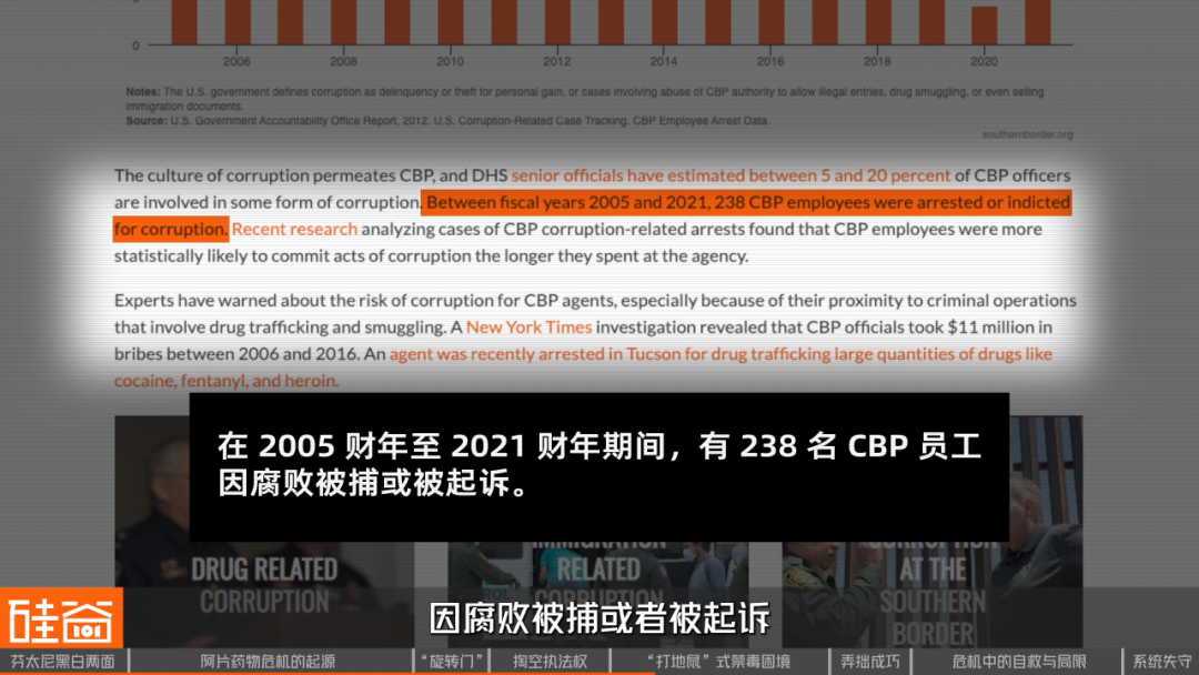 从2005年至2021年,CBP共有238名雇员因腐败被捕或起诉,其中71%的案件发生在美墨边境地区。