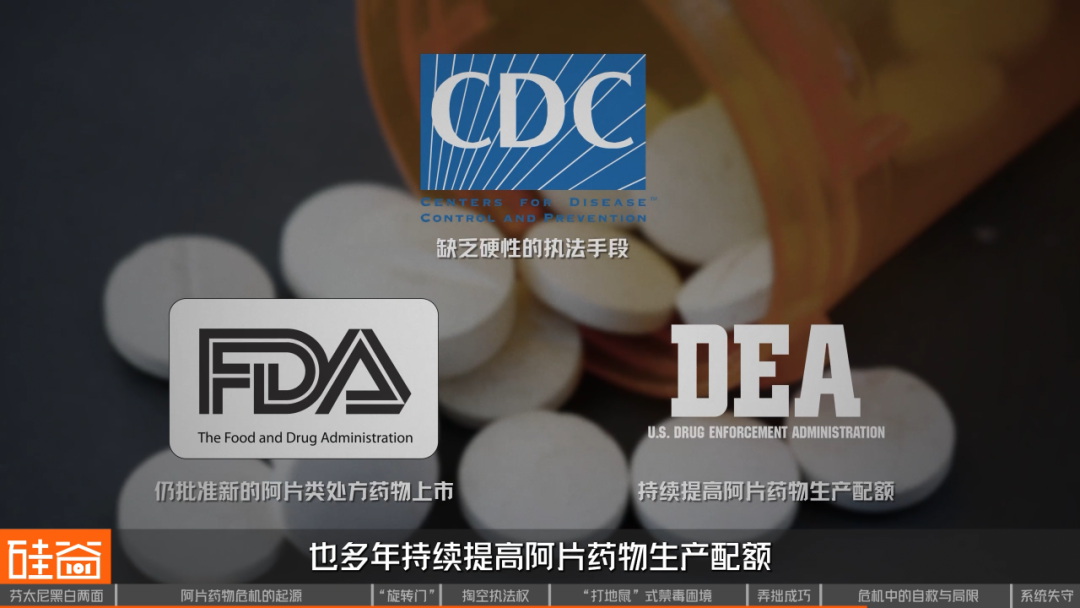 美国疾病控制与预防中心(CDC)缺乏硬性的执法手段,只能不停发出医学警告和指导;而彼时美国食品药品监督管理局(FDA)仍在批准新的阿片类处方药物上市,缉毒局(DEA)也多年持续提高阿片药物生产配额,让市场上流通的止痛药数量节节攀升。