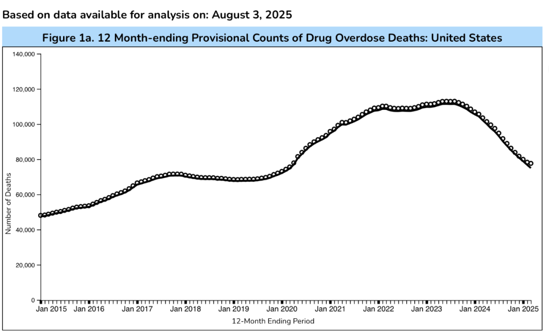 甲苯噻嗪并不是美国药物致死数据下降的唯一原因。2024年美国药物过量死亡人数确实大幅下降至2019年以来的最低水平,也是自1990年代阿片类药物危机爆发以来最显著的下降之一。
