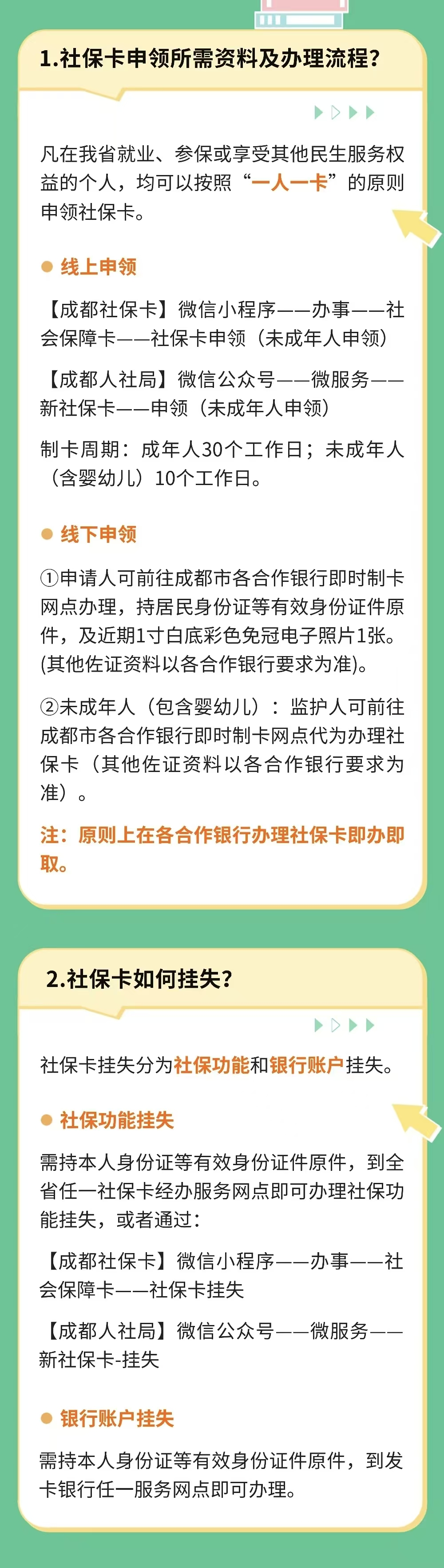 社保卡申领所需资料及办理流程?社保卡如何挂失?社保卡如何注销?社保卡制卡进度和卡应用状态如何查询?省外已有社保卡,在四川能申领社保卡吗?如何启用(激活)社保卡?电子社保卡的申领流程?······社会保障卡高频问答,一起来看看!