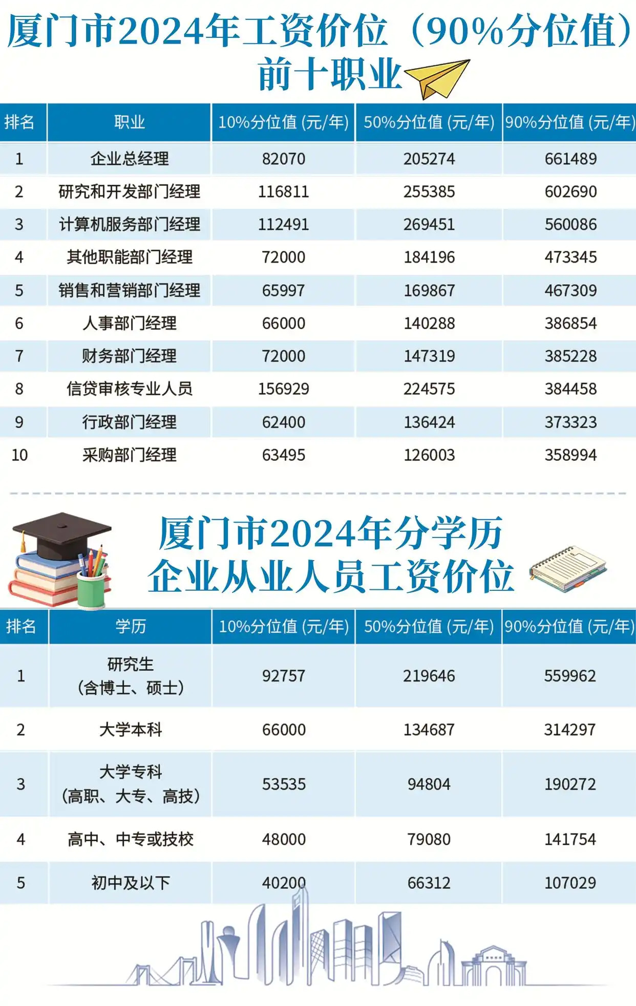 在厦门从事金融、IT行业收入如何?不同的学历和岗位技能水平收入相差多少?近日,厦门市人力资源和社会保障局发布了《厦门市2025年企业薪酬调查信息》,详实反映厦门地区劳动力市场价格状况。